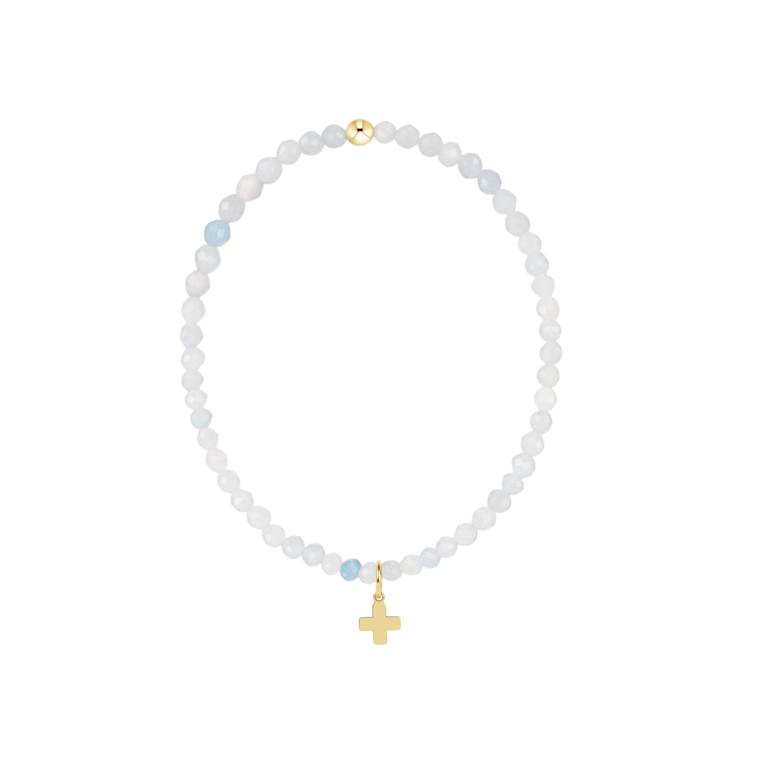 Classic Enewton Aquamarine 3mm Bracelet - Signature Cross Gold Charm