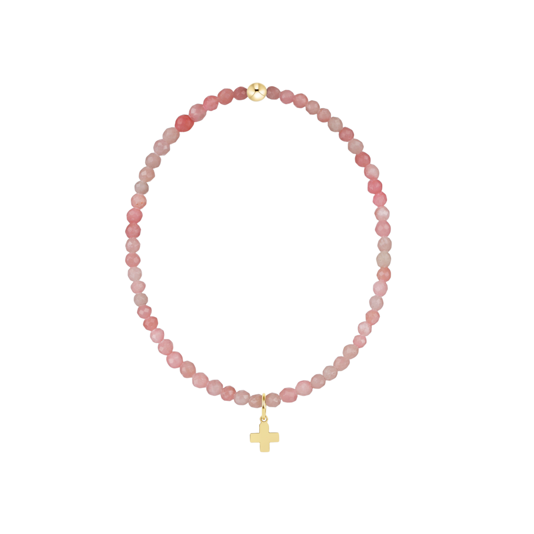 Enewton Classic Pink Opal 3mm Bracelet - Signature Cross Gold Charm